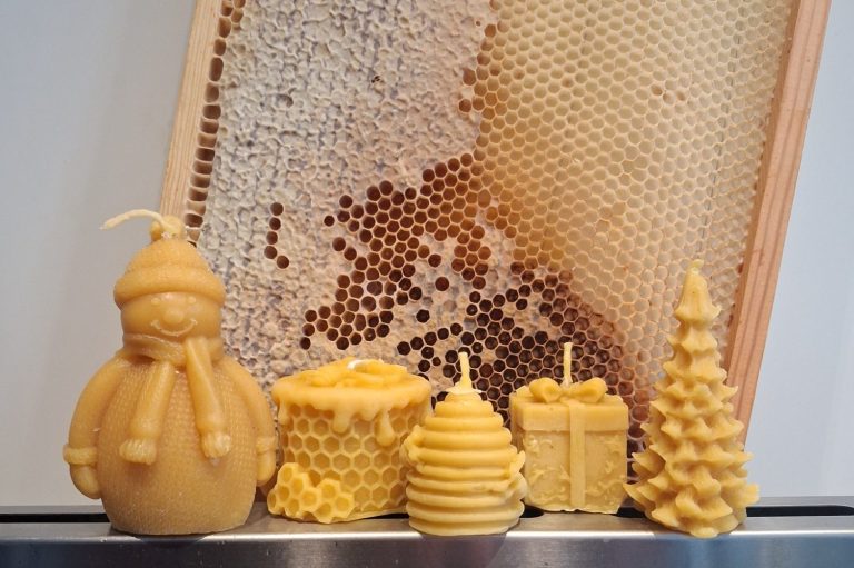 Van onze eigen bijenwas maken we diverse kaarsen.